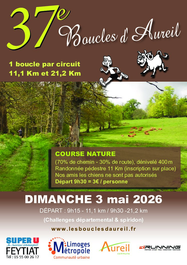 ARRIVEE : Dans le bourg de la commune d’Aureil pour les deux courses avec une arrivée en premier des 11.1km.