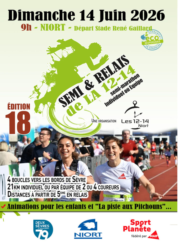Semi-Marathon au départ du stade René Gaillard (Niort) et à destination des bords de Sèvre, sur un circuit à parcourir 4 fois (6,100km sur la première boucle et 5km sur les 3 boucles suivantes).