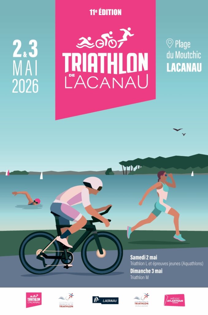 Le Triathlon de Lacanau revient les 2 et 3 mai 2026 pour sa 11ᵉ édition, au cœur de la station balnéaire de Lacanau, en Gironde. Niché entre lac, océan et forêt de pins, cet événement offre un cadre naturel unique, propice à la performance comme au plaisir sportif.