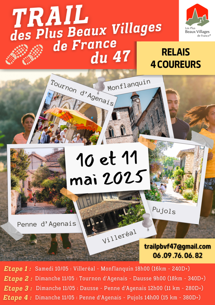 – Etape 1 : le 10 mai : 18h départ de Villeréal/Arrivée à Monflanquin (16 km 240 D+)